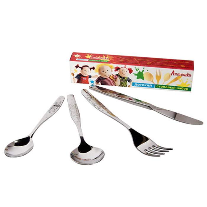 Детские приборы → Набор детских столовых приборов "Антошка" ( 4 предмета)